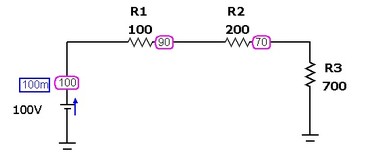 Figura 1 - Circuito série para exemplo ( a ) sem simulação ( b ) Com resultados da simulação (corrente e tenões nos nós)