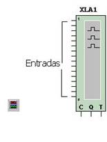 O analisador lógico permite visualizar vários sinais digitais ao mesmo tempo. Tem 16 entradas para sinais lógicos, que estando ativadas mostram o número do nó a qual está conectada. A Figura 1 mostra o ícone na barra de instrumentos e o símbolo na área de trabalho.