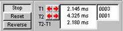 Os cursores (dois), permitem medir tempo (T1 e T2) e a diferença de tempo (T2–T1). Na Figura12 a indicação dos ponteiros é: