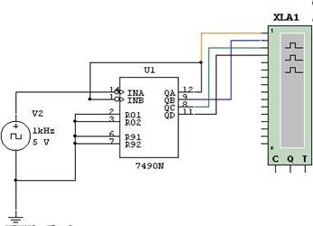 Exemplo3: A Figura 4 mostra como foi feita a conexão do analisador lógico a um circuito contador de 0 a 9.