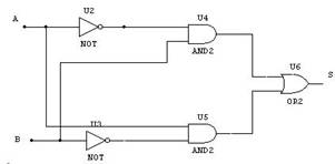 Observe que a lógica executada pelo circuito é a de uma OU EXCLUSIVO. Construído o circuito o passo seguinte é a conexão do gerador de palavras e do analisador lógico ao circuito como na Figura 9.