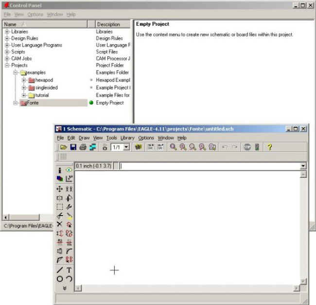 Entre estes, destacamos o diretório “Projects”, onde originalmente são armazenados os projetos em elaboração ou já concluídos. Observe que originalmente já existem 3 diretórios disponíveis, sendo que os dois primeiros contém exemplos de esquemas e placas prontas.