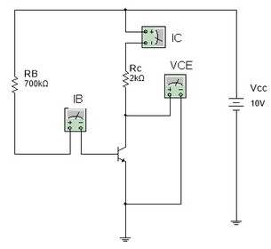 Consequentemente a corrente de coletor vale IC=β.IB: IC=100.18,6 mA= 1,86 mA e VCE=10 - 2k.1,86mA= 6,28 V e a potencia dissipada PD=VCE.IC = 6,28V.1,86mA=11,68mW