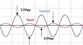 Com os valores da Figura2a e ligando o sinal de 0,25Vp resultam as formas de onda da Figura 3.