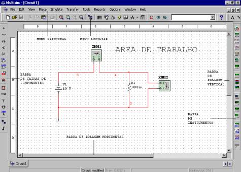 Esta é a primeira parte do trabalho sobre o multiSIM 7 e é dirigida para o estudo de circuitos em corrente contínua, desta forma os instrumentos e componentes aqui descritos são básicos nos estudo e simulação de circuitos em CC. A licença usada para fazer este trabalho tem o texto em inglês, desta forma toda vez que for feito referência em inglês o mesmo será colocado em itálico e entre parênteses e antes o termo equivalente em português.