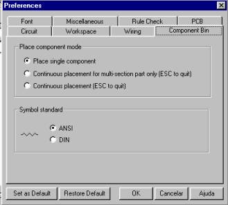 Comentemos com mais detalhes a aba Componentes Bin, figura 8, nesta aba pode-se selecionar a norma de simbologia usada, Symbol Standard (ANSI ou DIN). Sugiro manter o default, ANSI.