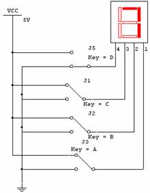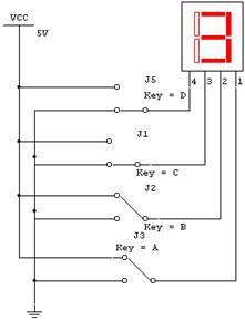 Exemplo05: A seguir o display decodificado conectado à chaves com entrada digital DCBA. Observar que o MSB (Dígito Mais Significativo) é o terminal 4 e LSB (Dígito Menos Significativo) é o terminal.