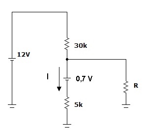 1) Qual o valor de R para que a corrente na bateria de 0,7 V seja 0,25 mA?